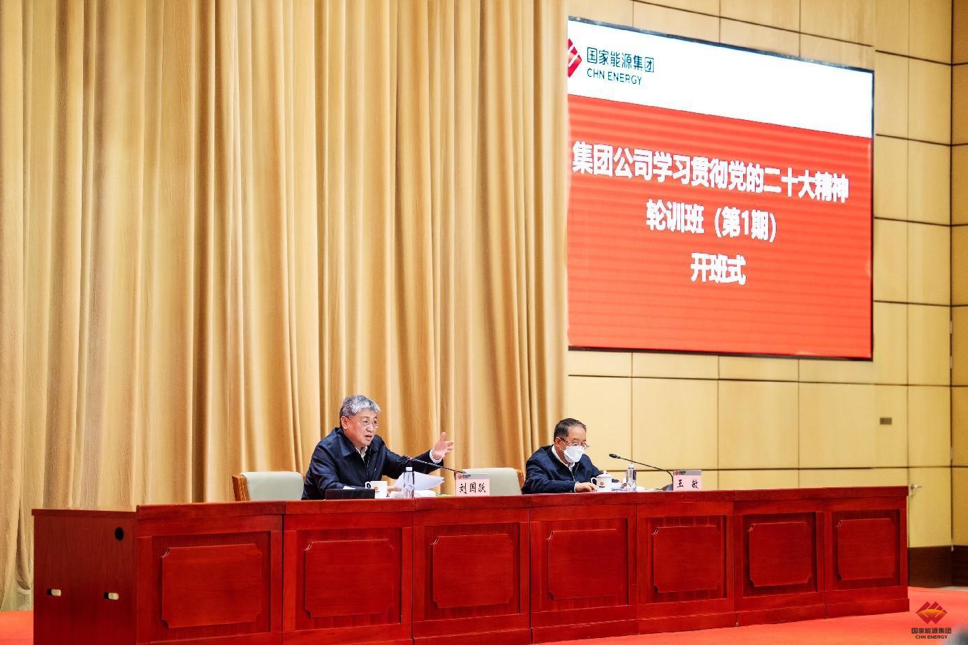 刘国跃在开班式上指出,全面学习贯彻党的二十大精神是集团公司当前和今后一段时期的首要政治任务。全体党员干部要学深悟透、入脑入心,要学懂弄通“两个确立”的决定性意义,学懂弄通习近平新时代中国特色社会主义思想的世界观和方法论,学懂弄通以中国式现代化推进中华民族伟大复兴的使命任务,学懂弄通全面建设社会主义现代化国家的目标任务,学懂弄通坚持党的全面领导和全面从严治党的重大部署,学懂弄通团结奋斗的时代要求等六个方面内容,把学习成果转化为践行“六个担当”的实际行动。要胸怀“国之大者”,把学习贯彻党的二十大精神与落实习近平总书记系列重要讲话和重要指示批示精神相结合,在变局中扎实推动集团公司“41663”总体工作方针落地见效,在思想和行动上做到“五个更加坚定”。一要更加坚定做强主业,抓实“四保一大”,有力服务国家战略和能源强国建设;二要更加坚定深化“四重一要”,全力推进重大项目建设,积极营造有力发展环境,提升全面可持续发展能力;三要更加坚定加大协同赋能,深化一体化赋能、数字化赋能、提质增效赋能,更好发挥国有经济战略支撑作用;四要更加坚定强化守正创新,加快创建世界一流企业,推动国有资本投资公司改革,大力建设创新型企业集团,着力提升行业引领力;五要更加坚定建强三支队伍,培养一批优秀专家、大国工匠和青年人才,为高质量发展提供人才保障。