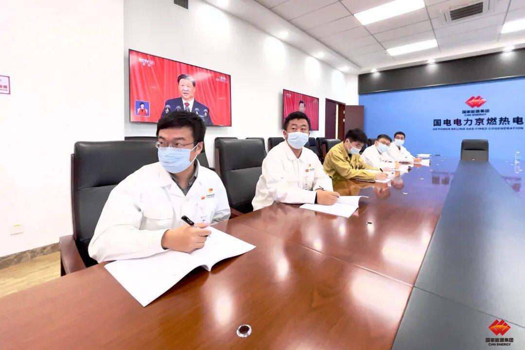 国电电力京燃热电员工在会议室集中观看了党的二十大开幕会
