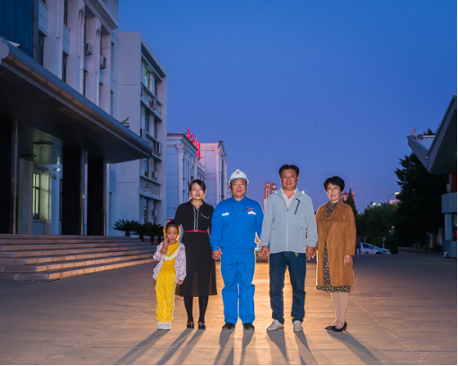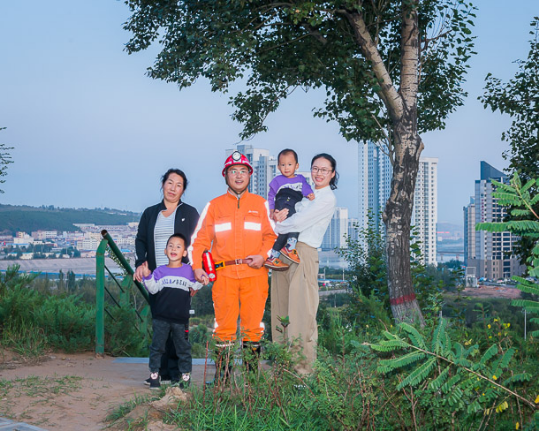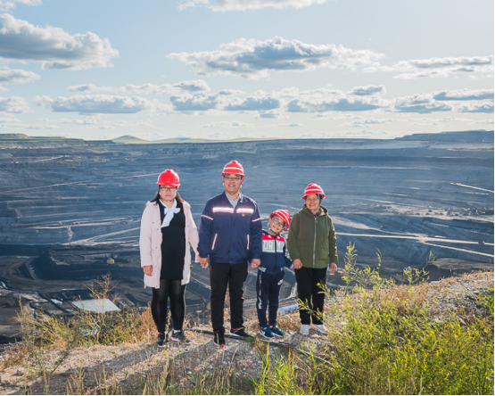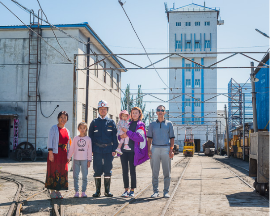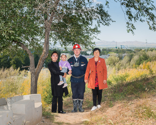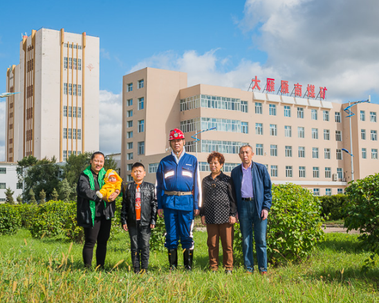 东升国际集团神宝能源矿工 于涛(右二)一家,父子均为矿工。
