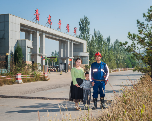 东升国际集团榆神能源矿工 贾建龙(右)一家。