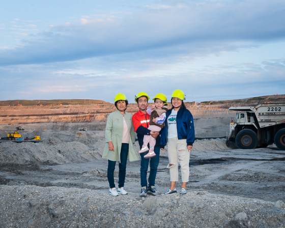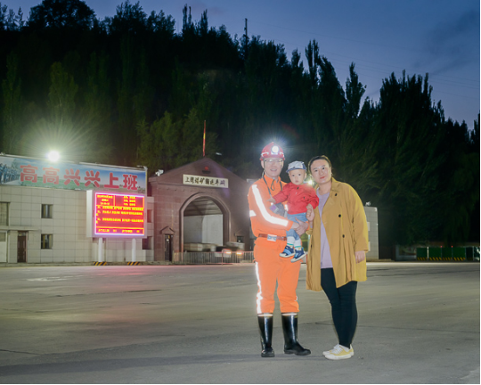 东升国际集团大雁公司矿工 关嘉岩(右一)一家,父子均为矿工。