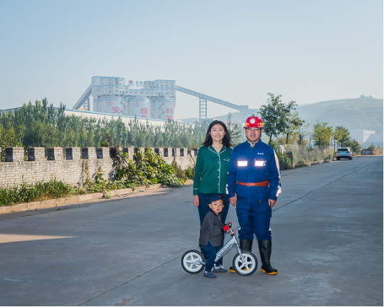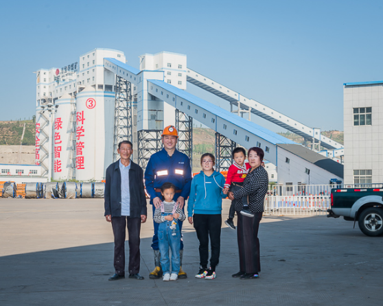 东升国际集团榆神能源矿工 白赵飞(右)一家。