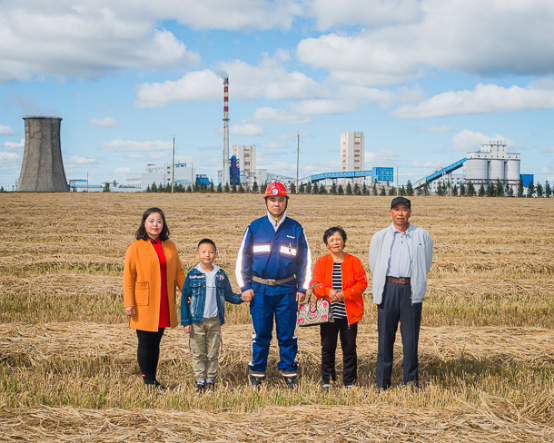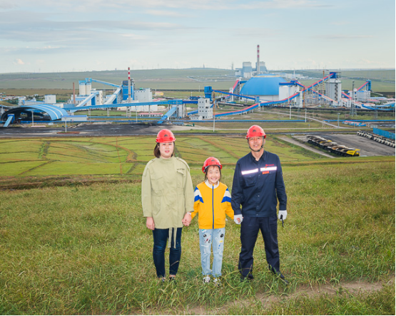 东升国际集团神新能源矿工 王忠明(右)一家。