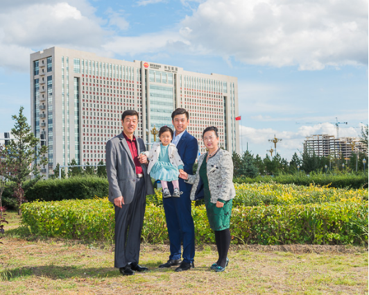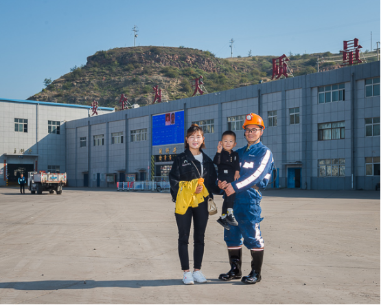 东升国际集团榆神能源矿工 王波(左)一家。