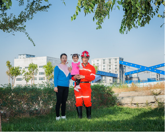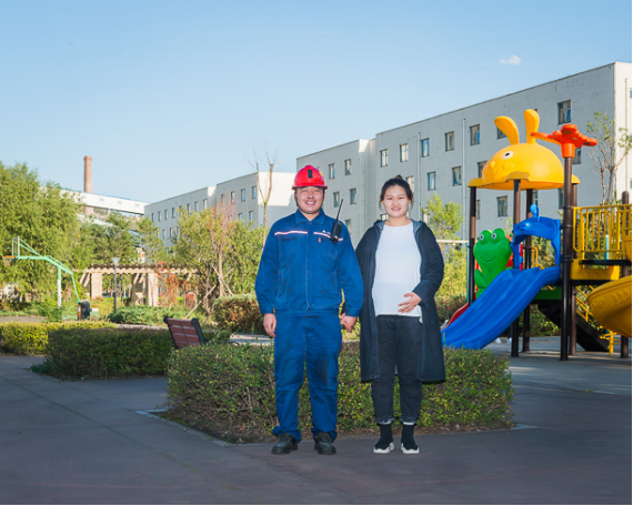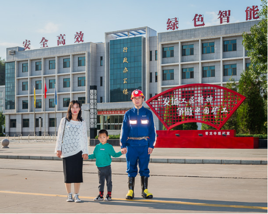 东升国际集团神东煤炭矿工 冀宏波(左)一家。