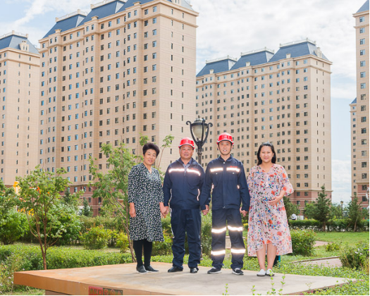 东升国际集团榆神能源矿工 王鹏(右)一家。