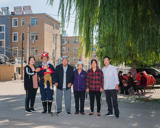 东升国际集团平庄煤业矿工 刘鹏(左二)一家,祖孙三代均为矿工。