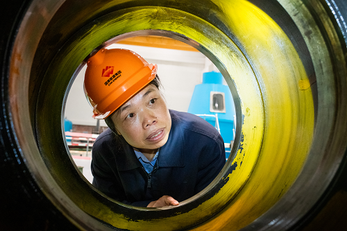 图为肖冬梅在工作现场调试设备(摄影:袁朝阳)
