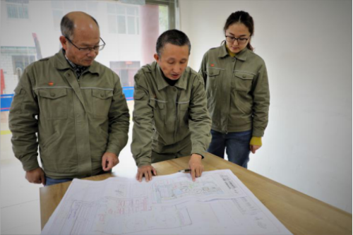 图为范小兵在随州公司审阅图纸