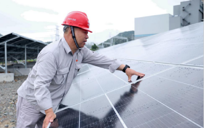 图为宁海电厂工作人员正在检查光伏板(宁海电厂刘志林摄)