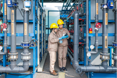 图为年轻职工参与综合能源项目建设(北仑电厂刘季江摄)