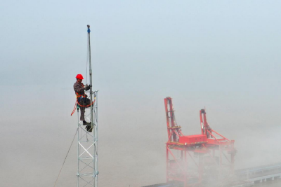 图为北仑电厂厂内安装测风塔(北仑电厂张梦雷摄)