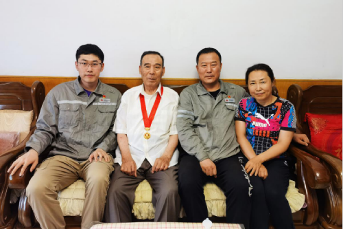 李景芳获光荣在党50年荣誉勋章,祖孙三代电力人合影留念