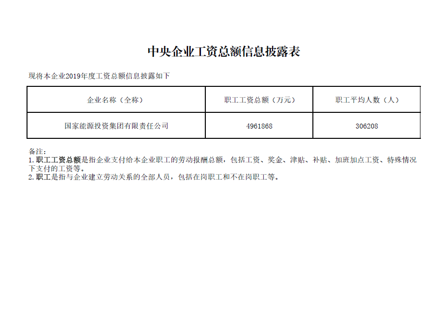 中央企业工资总额信息披露表2019